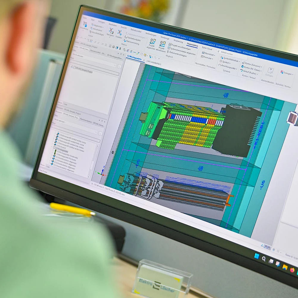 Präzise Projektierung mit modernster Software: Wir planen Ihre Steuerungen und Verteilungen in ePlan Electric P8. Durch 3D-Aufbauplanung mit Pro Panel sowie Smart Wiring und Smart Mounting garantieren wir höchste Präzision und Effizienz in der Ausführung.