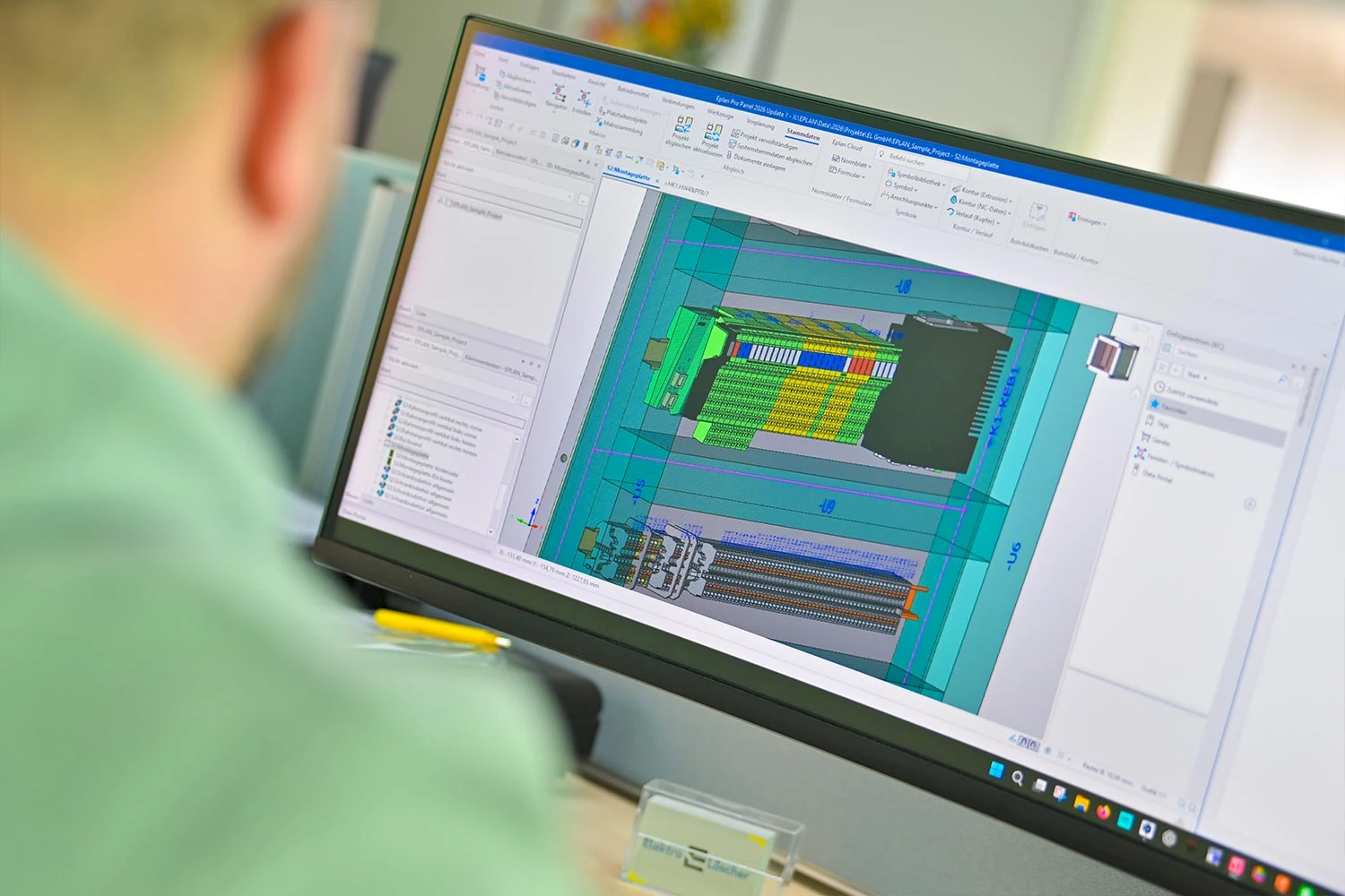 Präzise Projektierung mit modernster Software: Wir planen Ihre Steuerungen und Verteilungen in ePlan Electric P8. Durch 3D-Aufbauplanung mit Pro Panel sowie Smart Wiring und Smart Mounting garantieren wir höchste Präzision und Effizienz in der Ausführung.